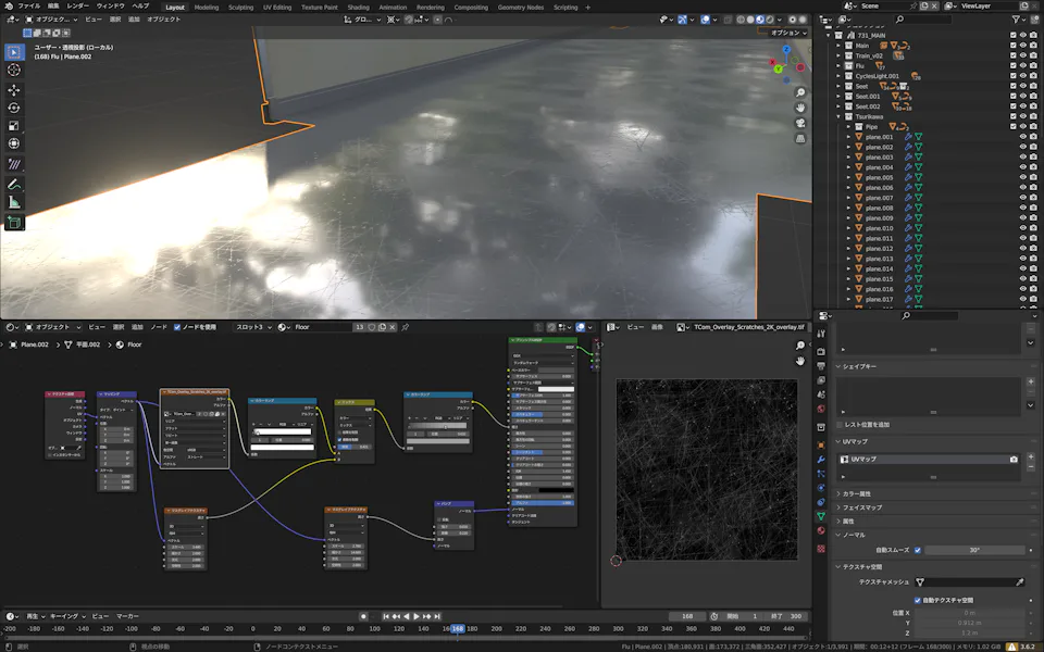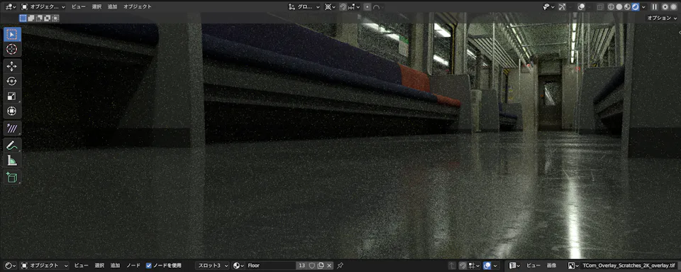 Inside the car (e.g., C-05), if you look at the floor, for example, you can see faint bumps and scrapes. This is reproduced by pasting and adjusting mass grave textures and textures for overlays. Such fine texture placement gives the object a used look and improves the overall quality.