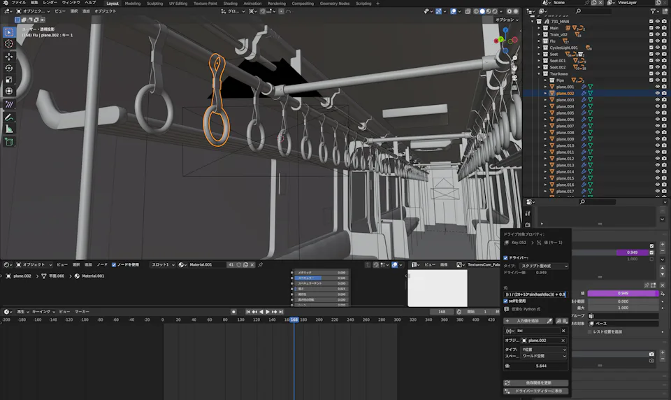 The following formula is substituted for the swing of the train suspension using a screwdriver for the value of the shape key with the angle adjusted.