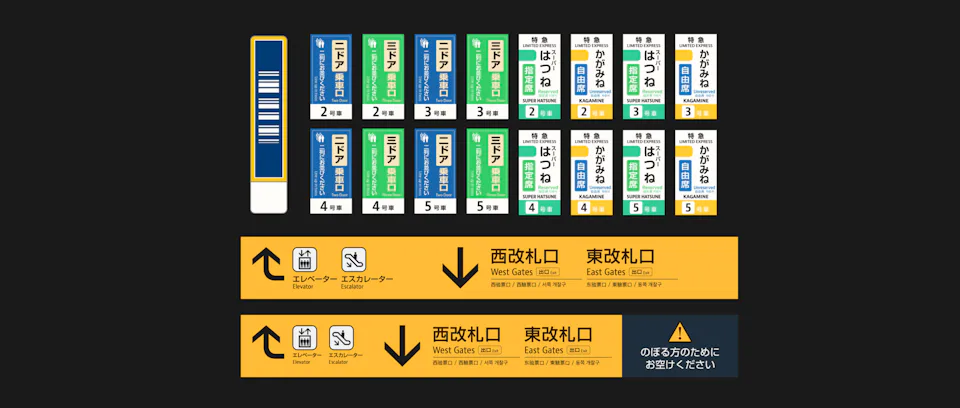 The overall graphic design, including the reproduction of the railroad signage system (signs and guides) for the CG, was done by kohakuno.